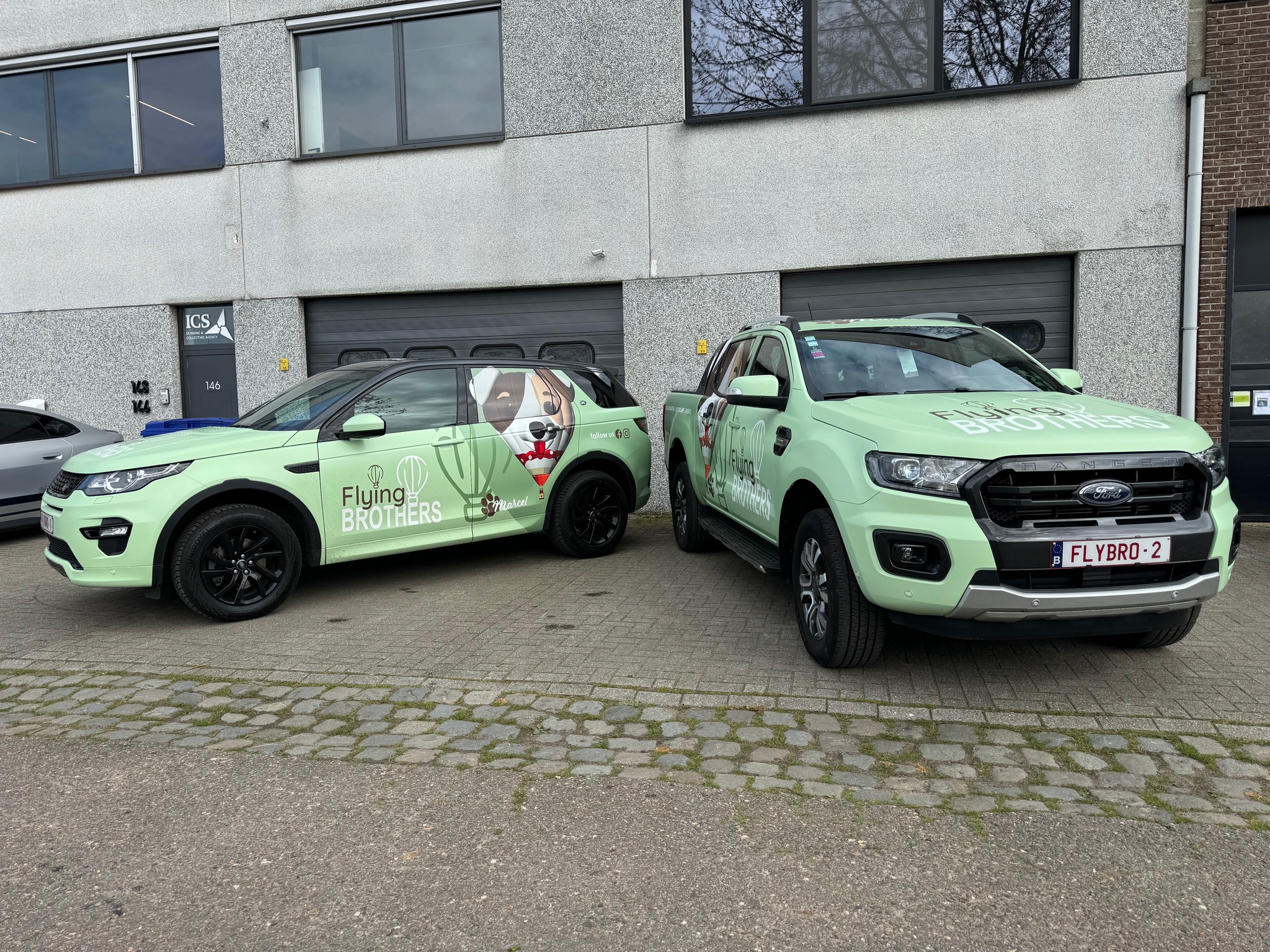 "Et voilà, onze nieuwe camionettes in de huisstijlkleuren. Professioneel vakwerk, zoals wij ook aan onze klanten bieden."