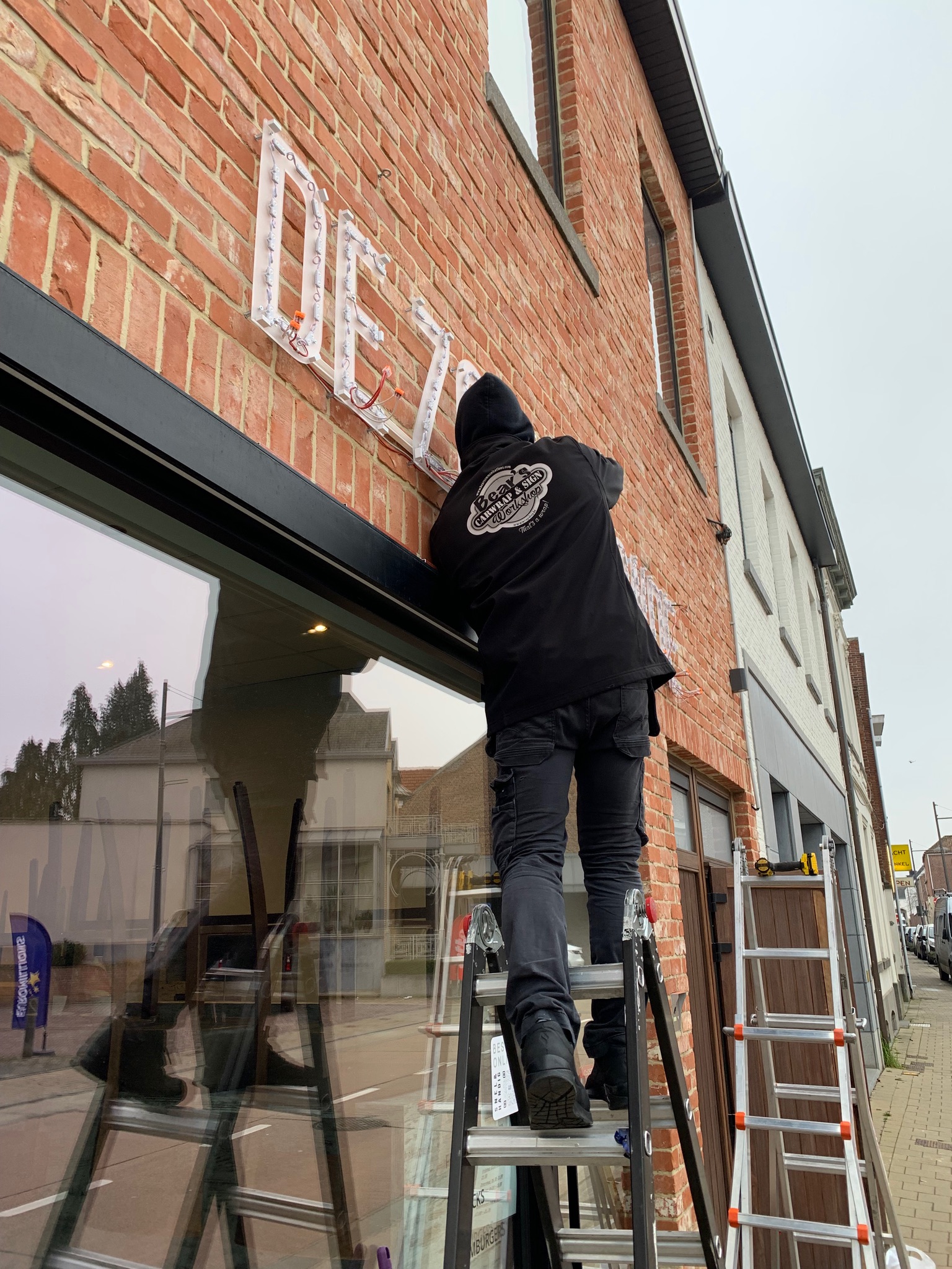 Voor onze klant mochten we deze lichtreclame plaatsen — een echte blikvanger, zowel overdag als ’s avonds.